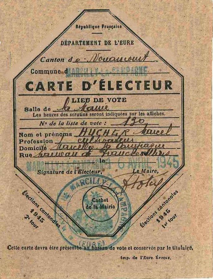 Merci à Chantal DORCHY (conseillère municiaple) pour nous avoir transmis la carte d'élécteur de son grand-père.